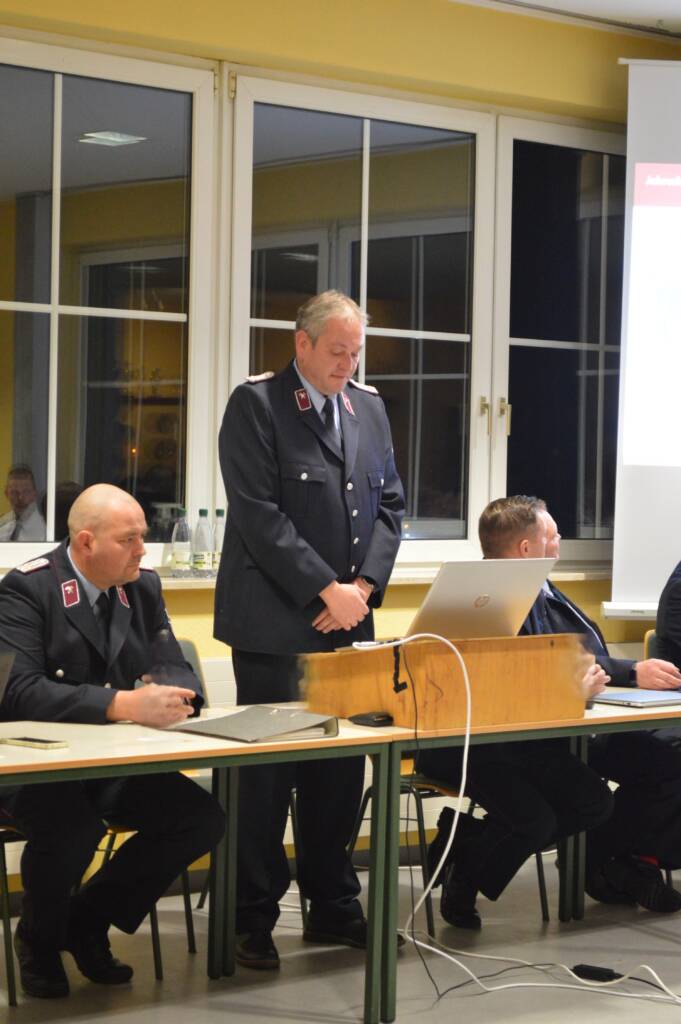 Zu Beginn der Versammlung wurde der im vergangenen Jahr verstorbenen Kameradinnen und Kameraden sowie Vereinsmitglieder in würdigem Rahmen gedacht. Ihr Engagement und ihre Verbundenheit zur Feuerwehr bleiben unvergessen.